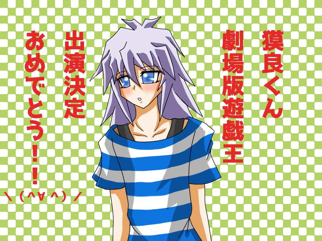 久しぶりの日記ですが、朗報が来たのでブログ書きにきましたよ!!遂に来年公開の劇場版遊戯王に獏良くんの出演決定がっ!!!!!!嬉しすぎて狂喜乱舞したいくらいですよ!!!!!そして、劇場版の獏良くんのインナーがタンクトップなのか長袖なのかとツイッターではばくらクラスタの意見が分かれますが、私はタンクトップでありたいと願ってます!!!!!そのほうが鎖骨見えるし肩もチラッと見えるからえっちぃだろうがっ!!!!!と私は思ってます。
