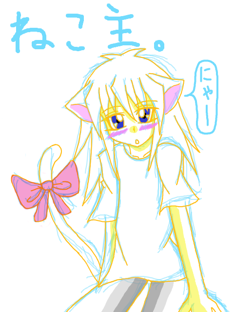 久々に手ブロでラクガキしたらなんか新機能の実験中バージョンが出てて驚いた;色も増えてるしなんか色々多機能になってきたぜ;で、上のラクガキはその実験中の手ブロで描いてきたブツです^^;急にねこ主が描きたくなって描いた。ぬこみみは萌えるぜ\(^o^)/まぁ、宿主ならぬこみみでもいぬみみでもうさみみでも何でも萌えるけどね^^ちなみに、上のラクガキのどうでもいい設定でこのねこ主はバクラが拾ってきました^^(ねこ主は捨て猫設定)しっぽのリボンは捨ててあった時から付いてます。ホント、バクラとぬこ主の話を妄想しただけで萌える!!(*´Д`)ハァハァ捨てぬこ主がいたら間違いなくその場でお持ち帰りするよ!!バクラが← しかも上のラクガキのままの形態だからヤろうと思えばヤれる(え)ぬこ主は絶対耳とか尻尾とか弱いと思う。バクラが尻尾を握っただけで感じればいい(*´∀`*)むしろ全部が性感帯で(オイ)バクラが触るたんびにビクビクするぬこ主に超萌える・・・!!宿主は何をしてもエロイ子なんだぜ!!(`∀´*)ヒャッハー