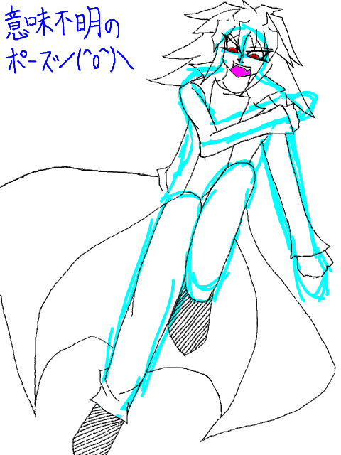 動きのある絵に挑戦してみようと思い描いてみましたが玉砕しましたorzなんだ、この変なポーズのバクラは;すごく意味不明だorzやっぱ、私には動きのある絵は向いてないのかなぁ・・・動きのある絵ってすごい好きなのに自分じゃ描けないから結局は憧れでいつも終わる;;動きのある絵ももっと描けるようにしなくちゃなぁ・・・ただひたすらに練習あるのみだ^^;しかもまた下書き状態;だって、色塗りめんd(ry