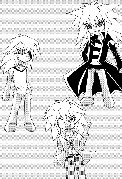今日のラクガキは絵チャで描いたバクラです。髪の色が初代なのに髪型が3代目仕様です;うっかり融合しちゃったぜ!!