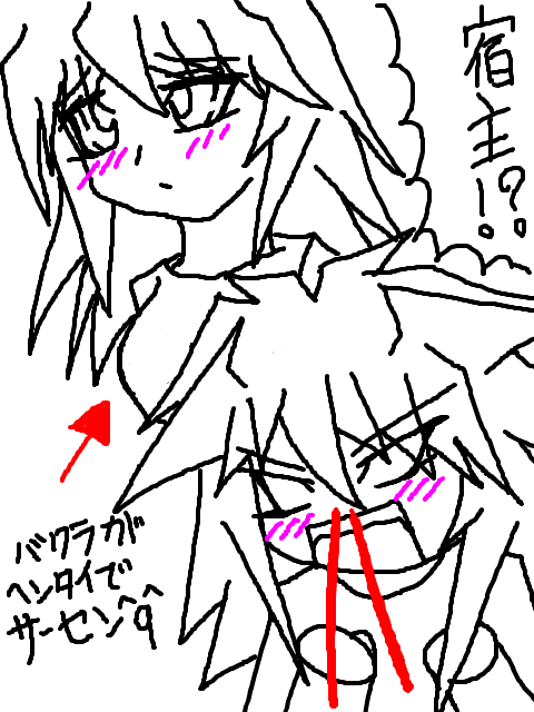 今日のラクガキはまさかのにょたです^q^「最強/○×/計画」を聞いてたら急ににょた主を描きたくなりました\(^0^)/私がにょたを描くのは大変珍しいことです。にょたの体を描くのが苦手なので滅多に描かないのが理由なんですが;男の体もそうだけど/(^0^)\それにしても、ydnsのにょたは違和感無さ過ぎだぜ^q^bkrは違和感ありありなんだけどね;あの凶悪面にちょっと・・・;さすがに引くぜ;