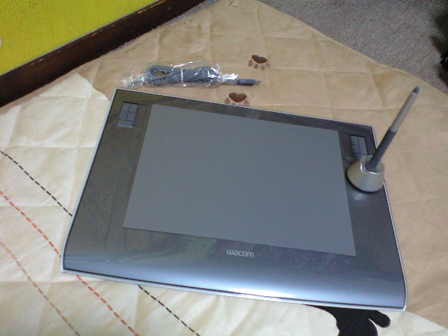 パソコンに詳しい身内の人からペンタブを送ってきてもらい、昨日新しいペンタブが届きました!!しかもメチャクチャデカイです;え、A4サイズってこんなにデカイのか;机の上に置けなくて困ってるんだぜorzノートパソコンよりデカいです/(^Ο^)\でも、このサイズなら大きい絵が楽に描けそうです!今まで使ってたのはA6サイズだったので描きにくかったからね;で、早速インストールして使ってみましたが・・・今までのペンタブより描き心地が違うんだぜ・・・!!なんていうか、まだ使い慣れてない所もあるので色々戸惑ってますが;ってか今のペンタブって凄いですね!ちゃんとペンの替え芯もあることに感心です!!ちなみにこれintuos3のシリーズです。