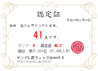 氷雨 彪さんのヤンデレ度は、 41 点です。