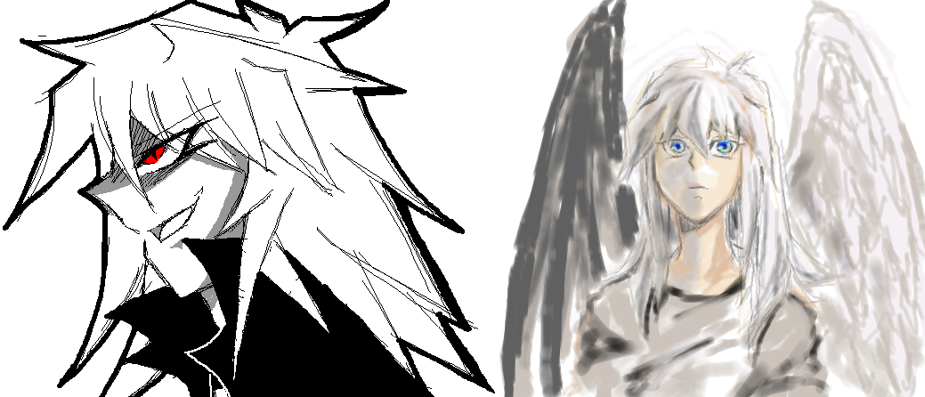昨日の絵ちゃで描いたばくらずです!描くキャラとかコスチュームは全部あみだで決めました!邪神サマが大変なことに・・・wwあみだは何が当たるかわからないのがおもしろいところだと思いますwってか、画面がふつくしすぎて・・・!!隣のバクラさんマジイケメンじゃろがー!!!!なにこのホスト← ちなみに私のは執事(メガネ付き)っていうのがあみだで当たったんだけど、執事服がわからなくてぐぐりながら描いてました・・・執事服ってこんな感じなのね・・・プラシド(執事版)が着てたのしか思い浮かばなかった・・・