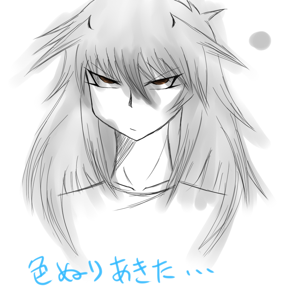らくがきに色塗ってたけど、なんか飽きたから放置してたらくがきです;珍しく瞳の色が茶色なのはDMのバクラの瞳の色にしようと思ったから・・・