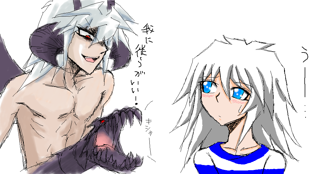 私が描いたバクラにR6さんが素敵に改悪してくれました!!さすがです!!><元が自分の絵なんだぜ、これ・・・全くの別人だ!