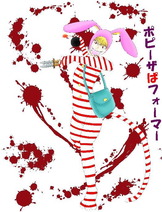 ポ/ピ/ーザ/ぱ/フ/ォ/ーマ/ーを見てたらなんとなく描きたくなったので一応、主人公のポ/ピーを描いてみましたが似てないですorz元々、CGアニメだからね;ポ/ピーの狂ってるところが好きです!^^にしても、ポ/ピーはうさぎの被り物をしているけどうさぎかどうか怪しいです^^;まぁ、公式設定ではサーカス団の見習いっていう設定があるし・・・ちなみに性別は公式で多分、男の子ってかいてあるし;そういえば、ポ/ピーの服って縞々じゃないか!Σ(0A0)ウ/サ/ビ/ッ/チでも縞々だし!でも、あれは囚人服だから縞々な訳であるし・・・うさぎ=縞々な方式でもあるのか?バクラと宿主の服も縞々だし(え)なんか、ばくら好きさんの間でもばくらず=うさぎっていうネタがすっかり定着してる^^;あっ、上の絵はクリック非推奨でお願いします;ぴくしぶにも置いてあるのでそっちの方が見やすいかも;まぁ、ぴくしぶのもクリック非推奨だけど;