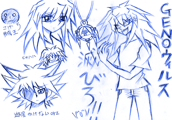 ども。今、大変なことになってしまってます^^;どうやら本格的なスランプが到来してしまったぽっいです;バクラが描けなくなってます/(^o^)\ちゃんと真面目に描こうと思って描いてみたらこんなのになってしまったorzあれ・・・?誰だ、これ;ひどいなんてもんじゃないぞ;;下絵も満足に描けないなんて・・・!!バクラが描けなくなってるので原稿にめっちゃ悪影響がorzふおおぉぉぉ・・・!!どうすんの、私;バクラが描けないとか死活問題だよ!!(そこまでか;)最近、デフォな絵しか描いてなかったからかなぁ・・・ちょっと、修行してきます^^;あーちくしょー!バクラの邪悪顔が描きたいのにー!!><やっぱ、バクラは邪悪でこそバクラだよね!!邪悪なバクラカッコいいぜ!!特に原作の古代編のバクラはいいよ!!あの雄臭さがたまらない!!(雄臭いって・・・;)あの筋肉とガタイの良いところと邪悪な顔もたまらない・・・!!萌えすぎて溶ける!!(え)