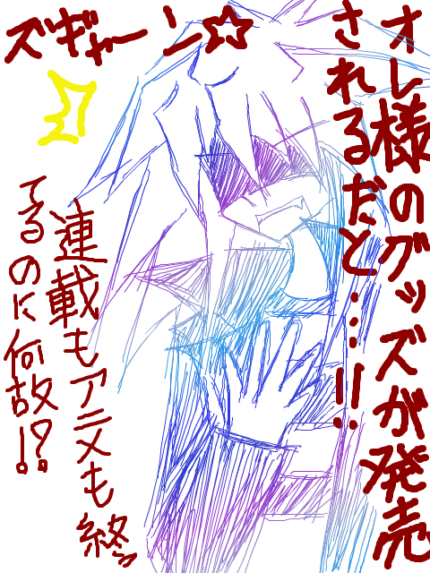 今日のラクガキはかなり汚いです;まぁ、ラクガキだからいいよね^^;バクラのグッズが公式で発売されると言うことでバクラに代理になってもらったよ!連載もアニメも終わって年月も経ってるからグッズとか正直諦めてたのにこうやって今頃になって出してくれるとは思わなかったんだもん><もうホント嬉しいです!わぁいヽ(∀`ヽ●)(ノ●´∀)ノ わぁい♪ほら、遊戯王ってカードが主流だからキャラグッズとか絶対出ないって思ってたからさ;遊星号も含めてね^^;高校時代に周りの友達が好きなアニメ・マンガとかのグッズがたくさんあったのを見てよく羨ましい・・・って思ってた時があったなぁ・・・でも、公式で出るんだから今度友達に会ったときに自慢できるよ!!(´∀`)いやー本当発売が楽しみだ!!