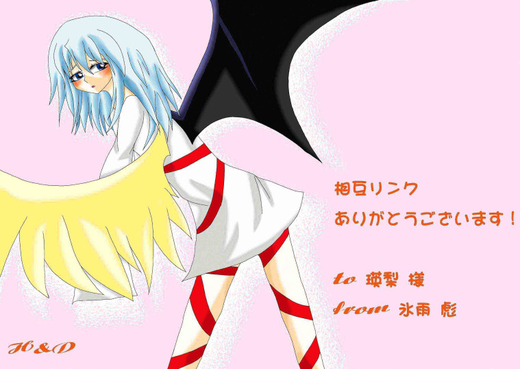 上の絵は相互のお礼として瑛梨さんに捧げるものです^^もし、ギャラリーに置いてある絵が重かったらこちらのを持っていっても構いませんので><これでも頑張って軽くしたんだけどその代わりに劣化が激しすぎて凹むorz